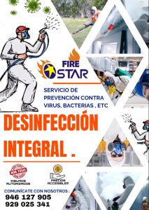 Nuestra Empresa viene Brindando el Servicio de Desinfección para establecimientos comerciales, hogares e instituciones. Con el fin de erradicar y disminuir el contagio y la propagación de Covid-19, pues es un virus que esta dañando muchas familias actualmente, por ende Firestar Peru con su equipo especializado en servicios de Saneamiento Ambiental le ofrece este servicio con el agrado de poder llegar a cumplir las expectativas pactadas en disminuir las probabilidades de contagio, gracias a un producto virucida de potente alcance y poder residual en la marca DMQ con una concentración química de amonio Cuaternario de quinta Generación, demostrando su factibilidad en diferentes países, el producto cuenta con Resolución del ministerio de Salud, Ficha técnica y de Libre comercio para las empresas que lo requieran, por ende nosotros nos sentimos avalados al fusionar un gran producto con un buen Servicio.